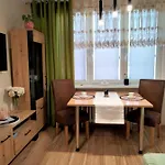 Součástí tohoto 1-pokojového apartmánu je také chladnička, trouba a kuchyňské nádobí. Z pokojů je možnost shlížet dolů na město. Samostatná toaleta a vana jsou nabízeny v koupelně.